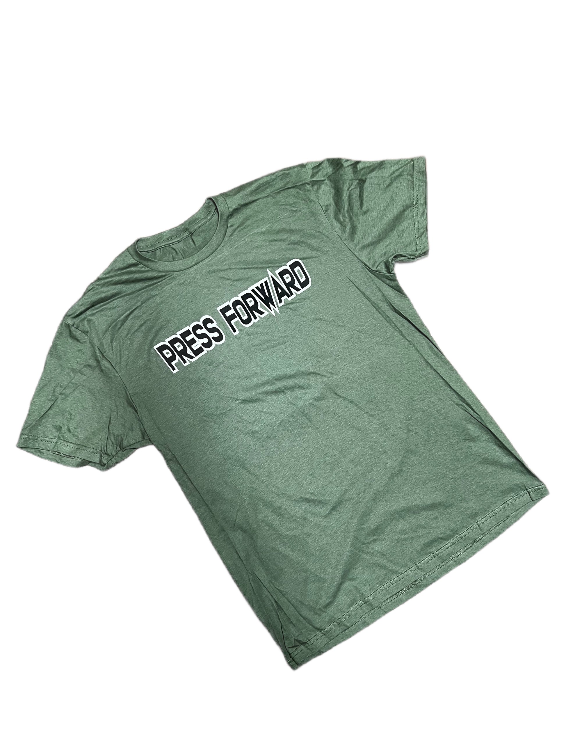 THIS TEE REPRESENTS THE ENCOURAGEMENT WE NEED TO FACE CHALLENGES IN OUR EVERYDAY LIFE. NO MATTER WHAT WE FACE, WHILE WEARING THIS TEE WE HAVE TO "PRESS FORWARD" BECAUSE QUTTING ISN'T AN OPTION.